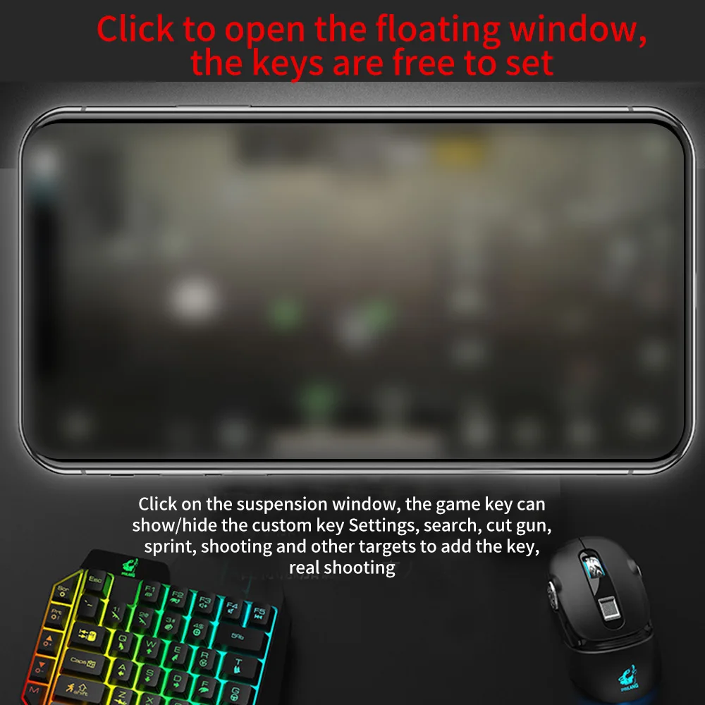 Мобильный геймпад поддерживает любой тип клавиатуры без bluetooth, например, механическую клавиатуру или ручную клавиатуру, а также любой тип мыши без bluetooth.