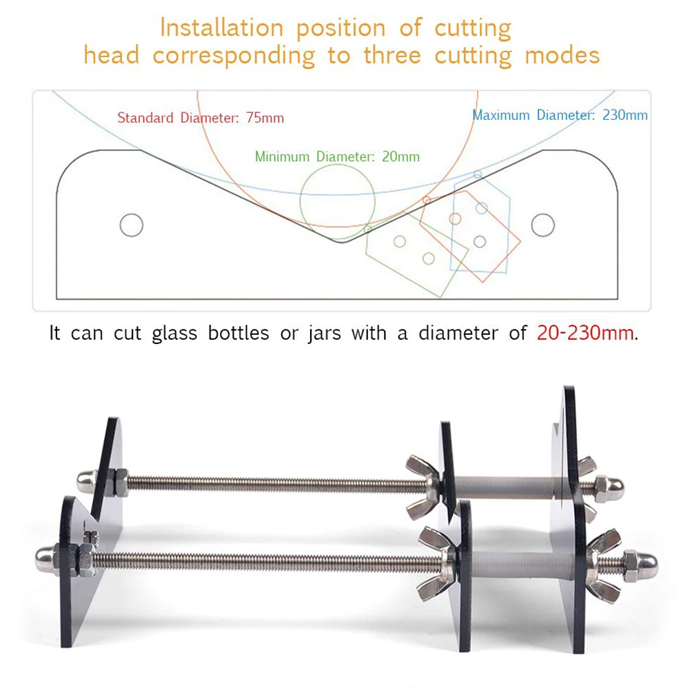 -Акриловые пластины и режущее лезвие регулируются, подходят для большинства стеклянных бутылок и банок на рынке, таких как пивные бутылки, винные бутылки и т. Д.