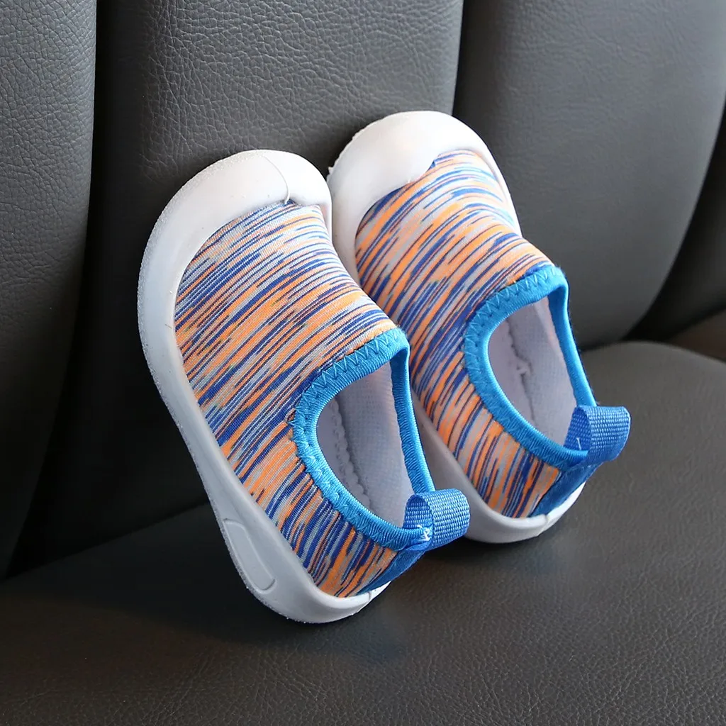 Детские эластичные спортивные кроссовки в полоску для маленьких мальчиков и девочек; Повседневная обувь