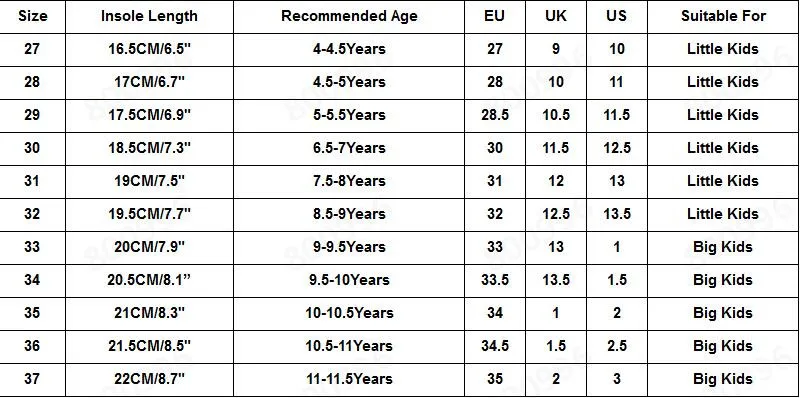 | 37 | 22 см/8,7" | 11-11.5Years | 35 | 2 | 3 | Дети младшего школьного возраста |