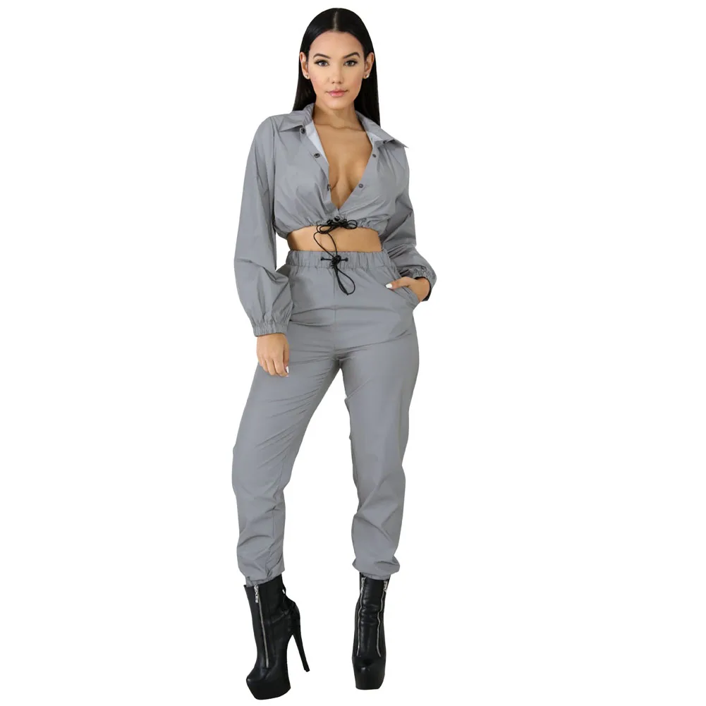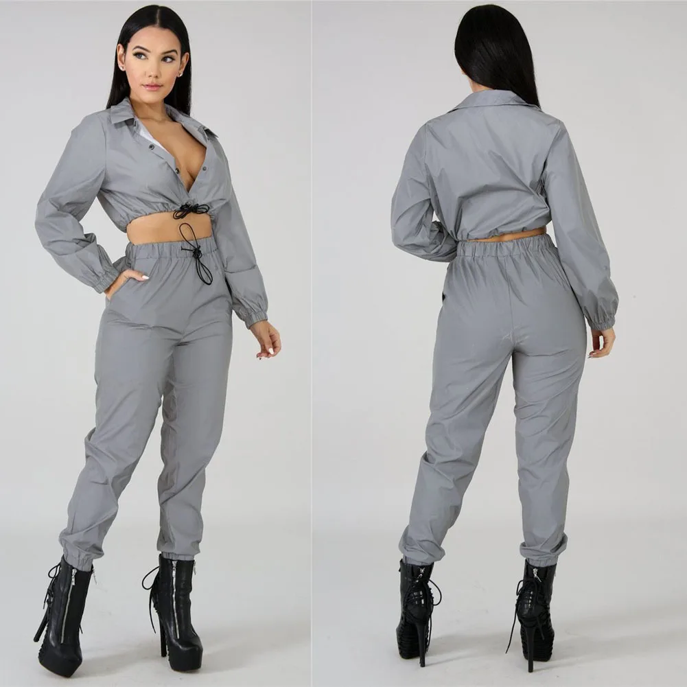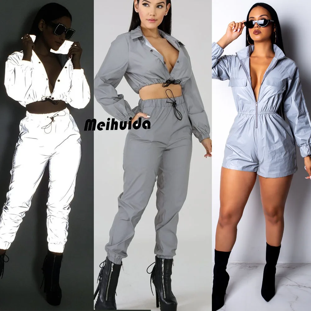 Основной цвет: как на картинке Стиль: Женские Светоотражающие костюмы Материал: полиэстер Посылка 1 * Топ и 1 * брюки (стиль А) / 1 * комбинезон(Стиль B)Стиль A