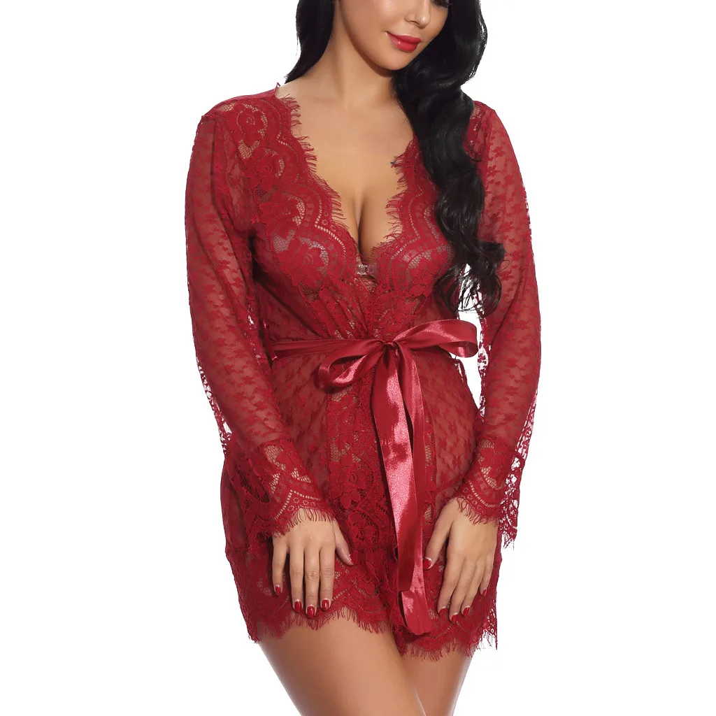 Женское кружевное Прозрачное эротичное нижнее бельё, эротичное нижнее бельё, комплект с стринги, сексуальные костюмы, кимоно, 2019