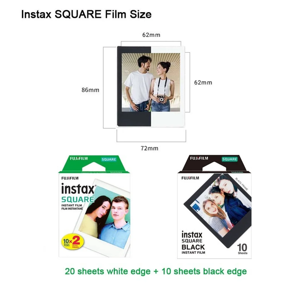 Белая пленка для Fuji Instax SQ20 SQ10 квадратный пленка двойной комплект с белой кромкой черный край фото пленка для Fuji Instant SQ10 SQ6 Фотоаппарат моментальной печати SP-3 Описание принтера