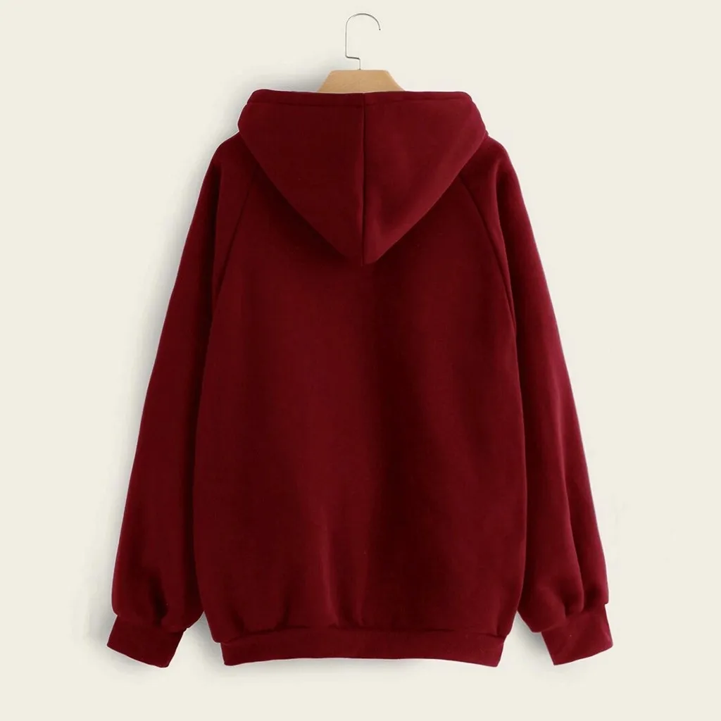 Women's Casual Solid Color Hooded Pocket Long Sleeve Pullover Sweatshirt