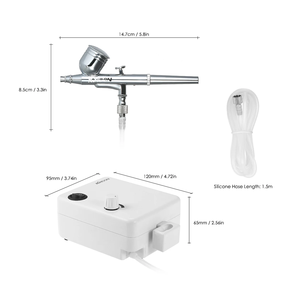 Размер аэрографа: 14,7*2,8*8,5 см/5,8*1,1 * 3.3дюйма
