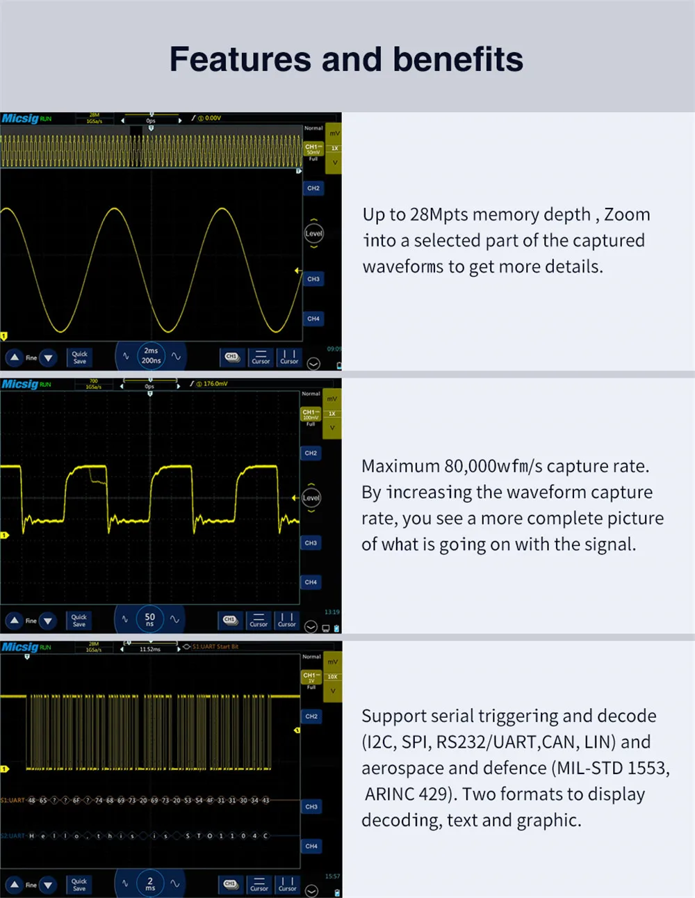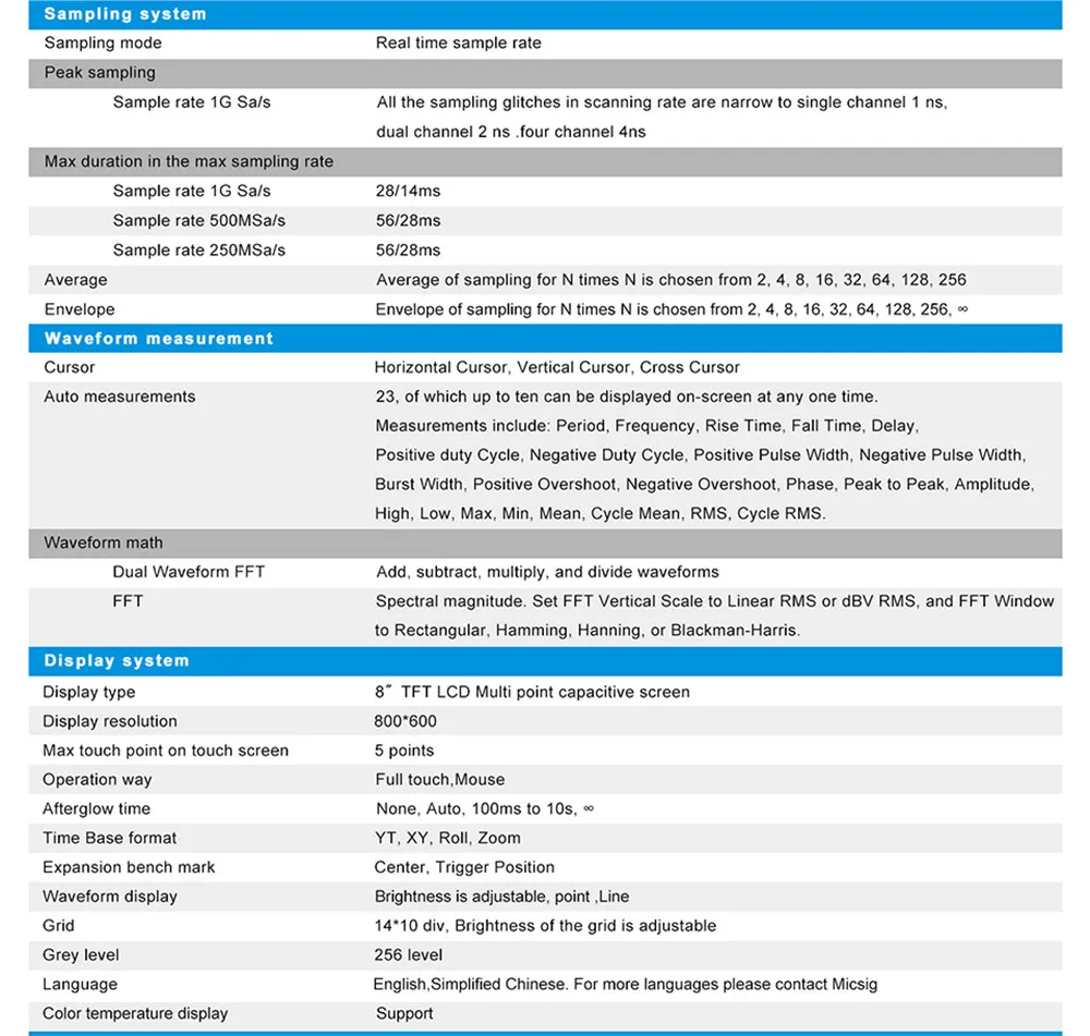 1. Bandwidth up to 150MHZ, 1 Gsa/s Sample Rate.