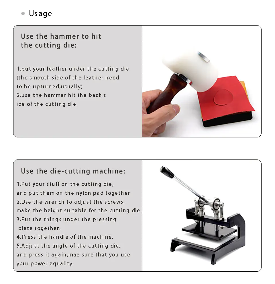 Описание: Этот продукт представляет собой форму для сережек. Предназначен для резки кожи. Материал: это деревянный нож. Японская стальная форма ножа. Высокая четкость. Размер продукта: 60*24 мм Использование A. С помощью Высечки 1. Поместите свои вещи на режущие штампы и поместите их вместе на нейлоновую прокладку 2. Используйте гаечный ключ для регулировки винта, чтобы сделать высоту подходящей для резки Форма 3. Положите вещи под платину вместе 4. Нажмите на ручку машины 5. Отрегулируйте угол режущего штампа и нажмите его снова, чтобы убедиться, что мощность равна. B. С помощью нейлонового стержня, чтобы ударить форму для резки 1. Введите кожу под форму для резки 2. Используйте нейлоновый стержень, чтобы ударить лезвие по режущей матрице, обратите внимание на настраиваемые режущие штампы, вы можете отправить нам свой дизайн логотипа и размер, цена «пользовательской формы» не является реальной ценой, Пожалуйста, свяжитесь с нами, чтобы подтвердить цену.