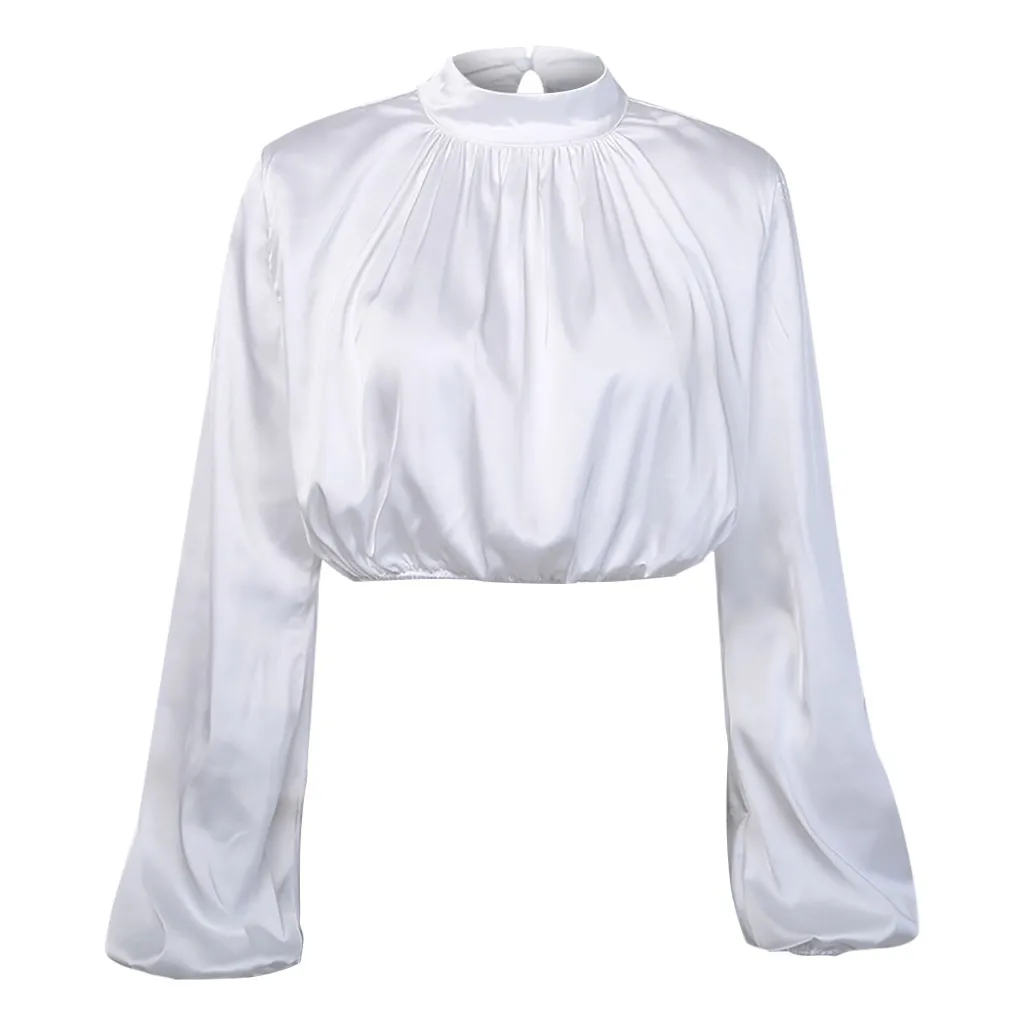Женская однотонная Свободная блузка с круглым вырезом и длинными рукавами