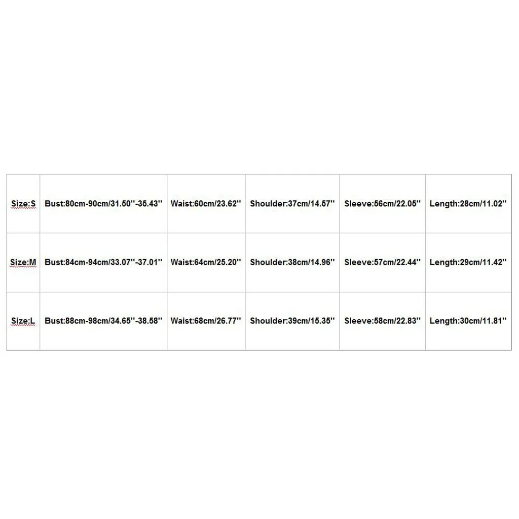 | Size | Bust | Waist | Shoulder | Sleeve | Length |