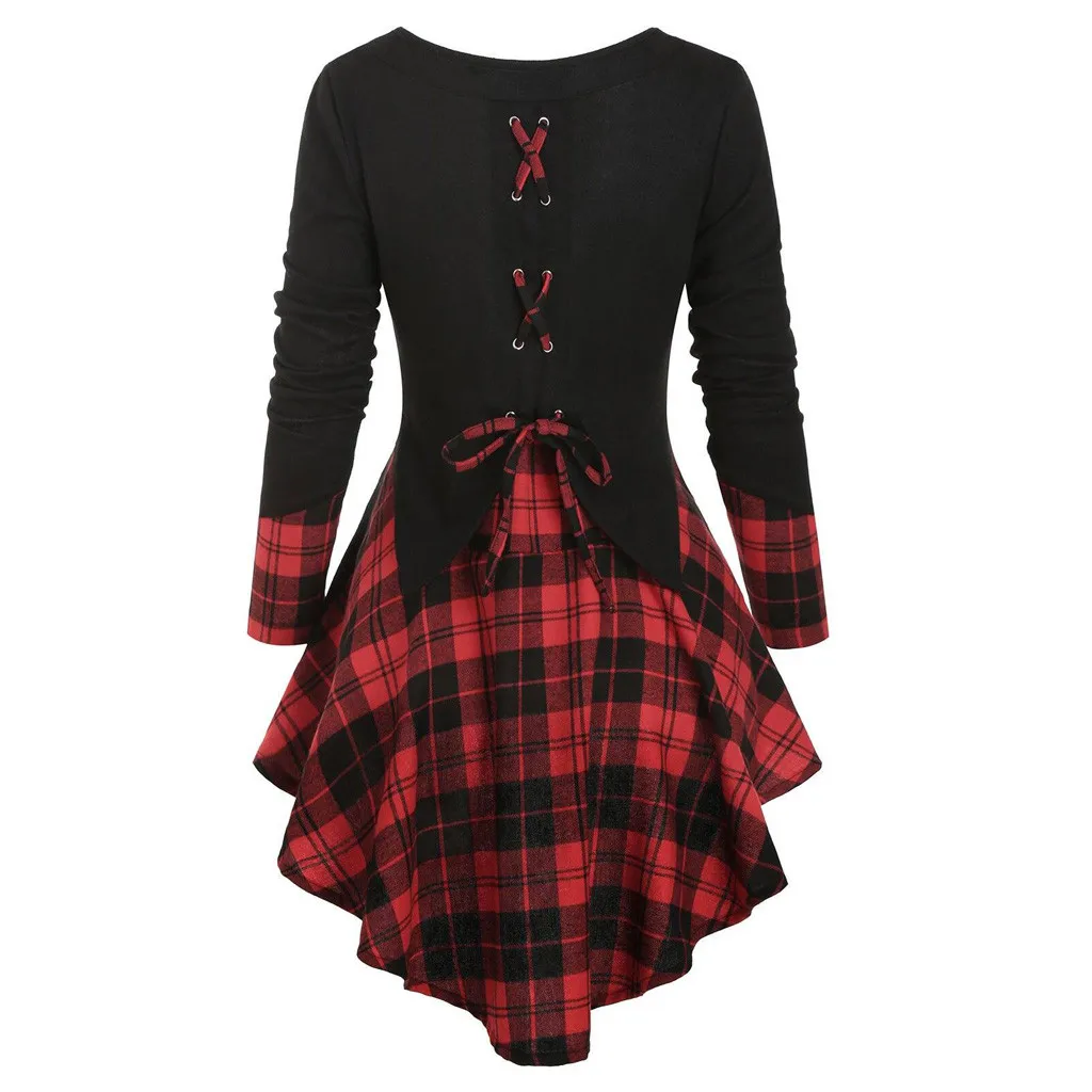 1. Особенности: повседневные топы, Длинный рукав, клетчатый пэчворк, бандаж, шнуровка, пэчворк, повседневные топы, асимметричные, Высокие Низкие топы, повседневная одежда, стильный и модный дизайн, осенняя Повседневная блузка.