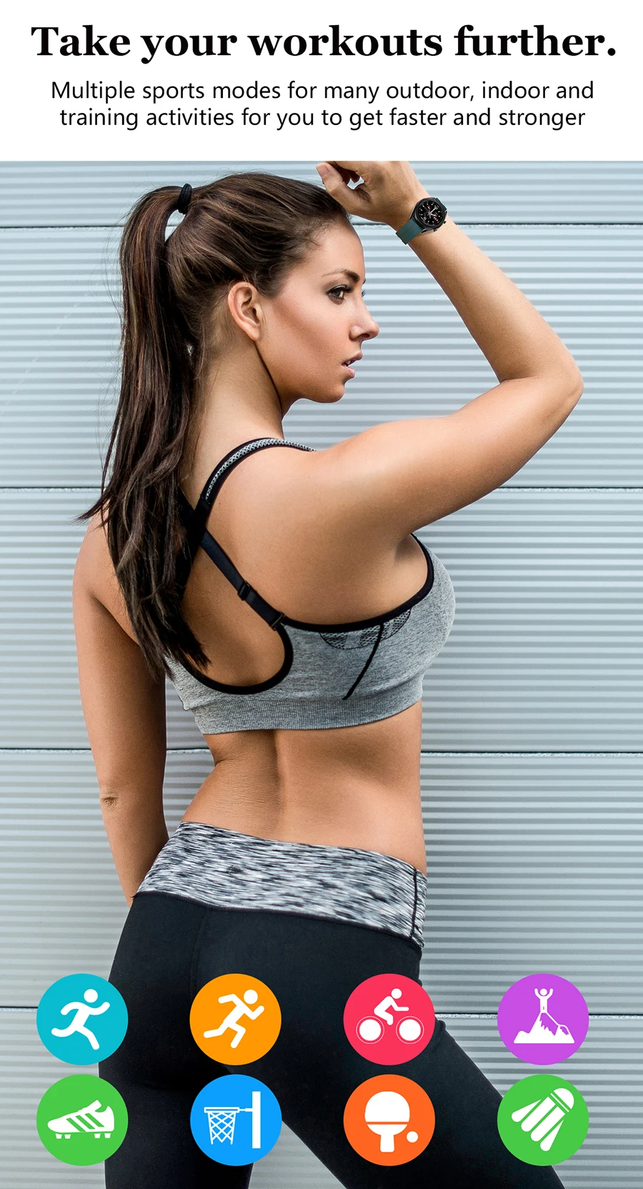 10 + циферблат, частота сердечных сокращений, ЭКГ, кровяное давление, кислород в крови, кислород в крови, мульти-упражнения, ритм, секундомер, дистанционное фотографирование, контроль музыки.