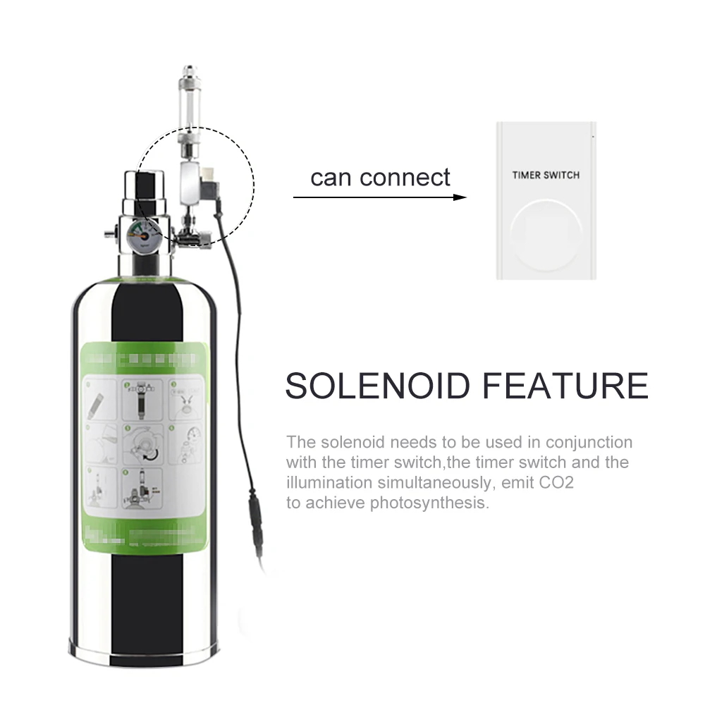 Соленоидный клапан: для управления включением и выключением системы генератора CO2 с помощью таймера (не входит в комплект).