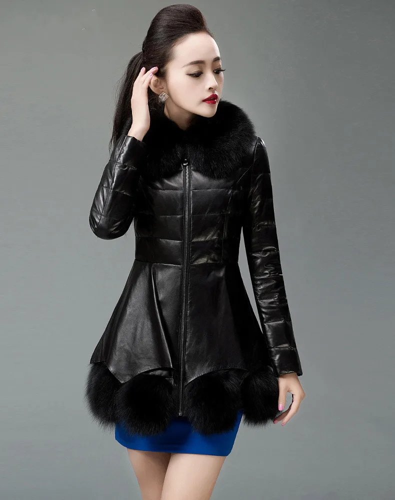 Женское кожаное пальто, кожаная куртка, женская кожаная куртка, мотоциклетная куртка, пальто с искусственным мехом, меховой воротник, красное зимнее пальто для женщин, длинное, 4XL
