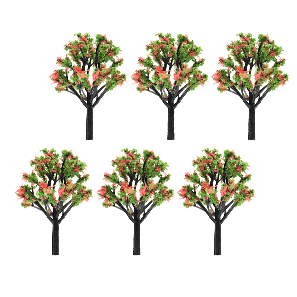 Красно-зеленая модель дерева, 50 шт., песочный стол, пейзажная игрушка, моделирование сцены, персиковое дерево, столб, миниатюрный строительный поезд