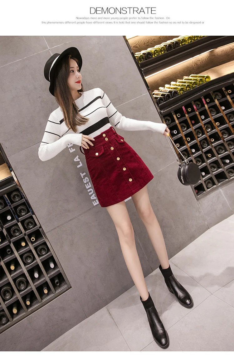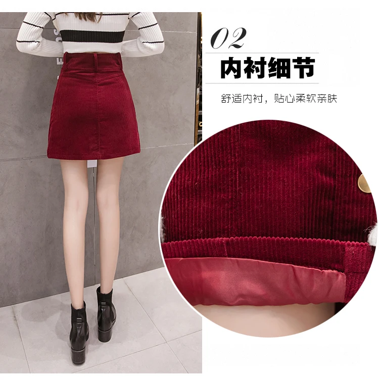 Новая бархатная женская юбка, Осень-зима, корейская мода, повседневная, высокая талия, облегающая юбка, красная Вельветовая юбка, Женская юбка в стиле хип-хоп, XL