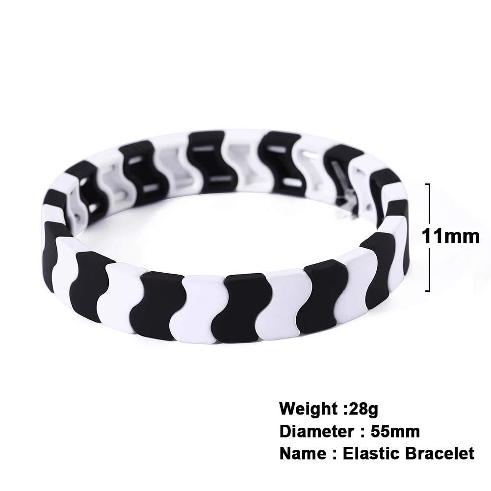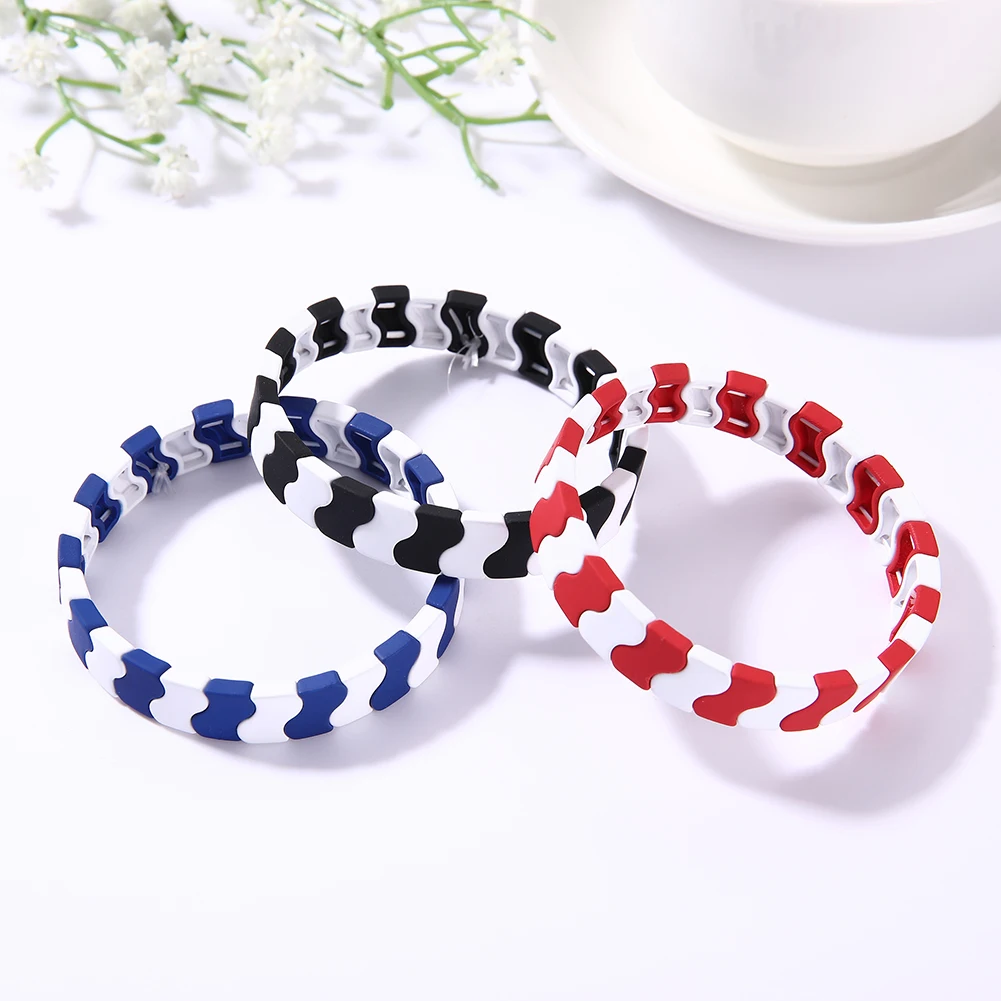 1. Диаметр браслета: 55 мм 2. Материал: окрашенный сплав + эластичный шнур 3. Три Цвета