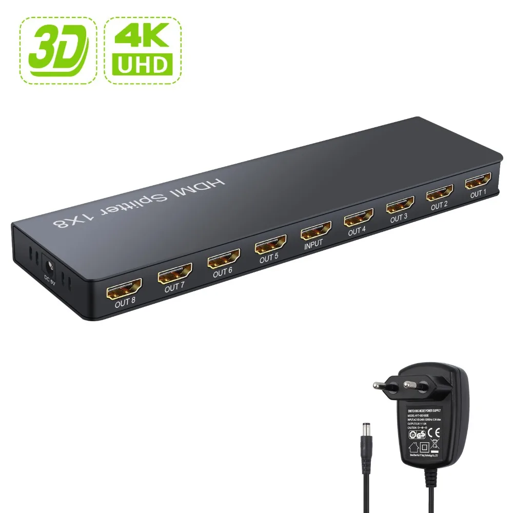 Hdmi-совместимый разветвитель 1 в 8 выход, 1x8 портов коробка поддерживает Full Ultra HD 4K/2K @ 30 Гц 1080p и 3D разрешения для ПК STB PS3 Roku Blu-Ray плеер HDTV