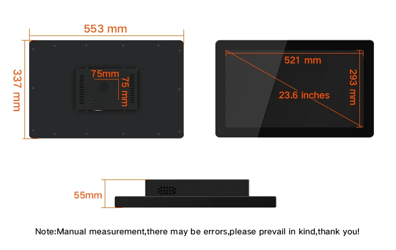 ЖК-дисплей Размеры: 15,6-23,6 дюймов TFT ЖК-дисплей Соотношение сторон: 16:9 Коэффициент разрешения: 1366*768/1600*900/1920*1080 Тип сенсорного экрана: емкостный сенсорный экран (десять касаний, индукция по току) Интерфейс сенсорного экрана: USB Коэффициент пропускания: 80% Жизненный цикл: 35 миллионов раз (теоретическое значение) Яркость: 300 кд/м2 Контраст: 500:1 Цвет: 16,2 миллионов цветов