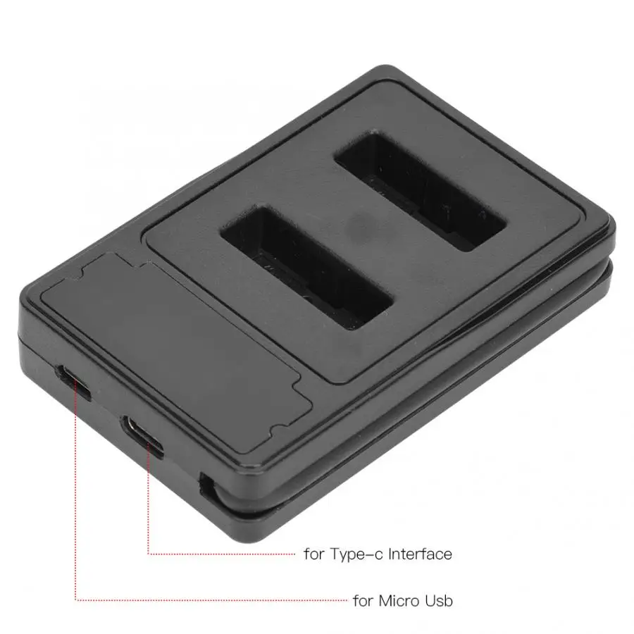 1. Двойной разъем для зарядки, может заряжать два аккумулятора одновременно.