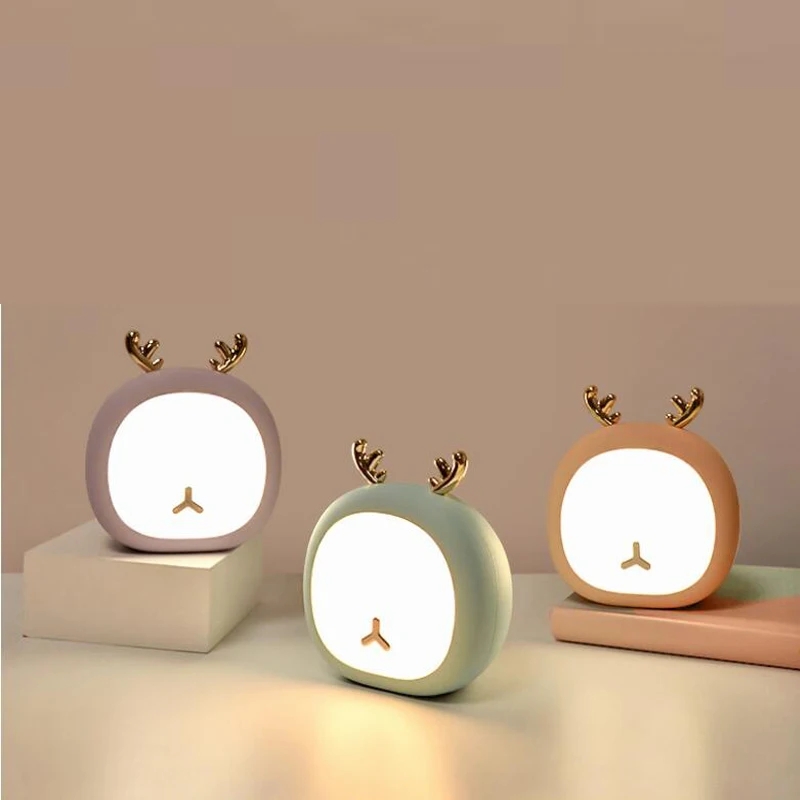 Новый Ночной светильник с изображением кролика оленя, светодиодная лампа, Портативная USB лампа для зарядки, Детская прикроватная лампа, Рождественский ночной Светильник