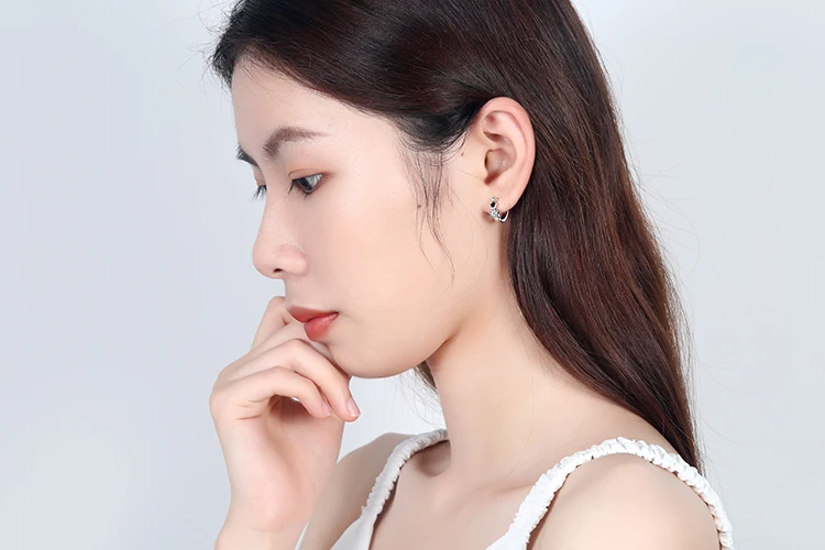 Женские серьги кольца BUDONG серебристые/золотые с белыми кристаллами и кубическим