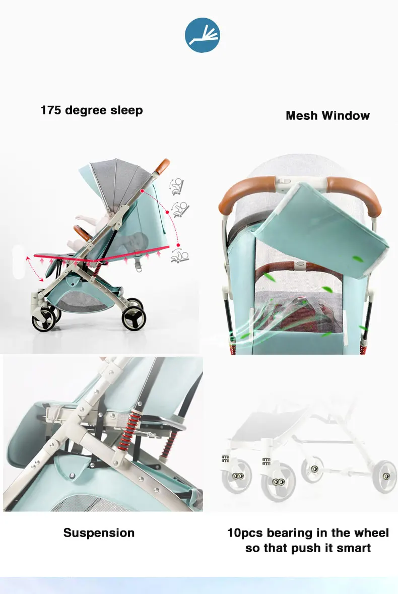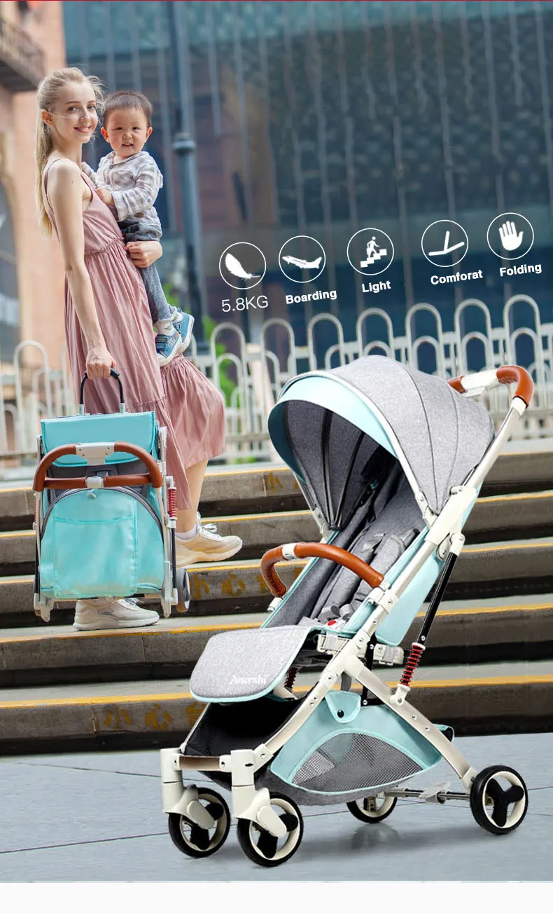 Детская коляска * 1 + 8 шт. в подарок (хлопковая подкладка, летний коврик, москитная сетка, подстаканник, ремешок на запястье, сумка для хранения, дождевик, подлокотник)