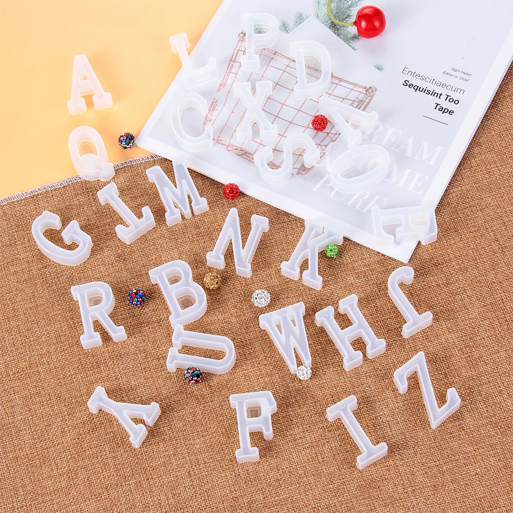 1PC English Letters UV Epoxy Resin Mold Alphabet Silicone Mould DIY Crystal Pendant Jewelry Key Chain Making Tools Clay Molds