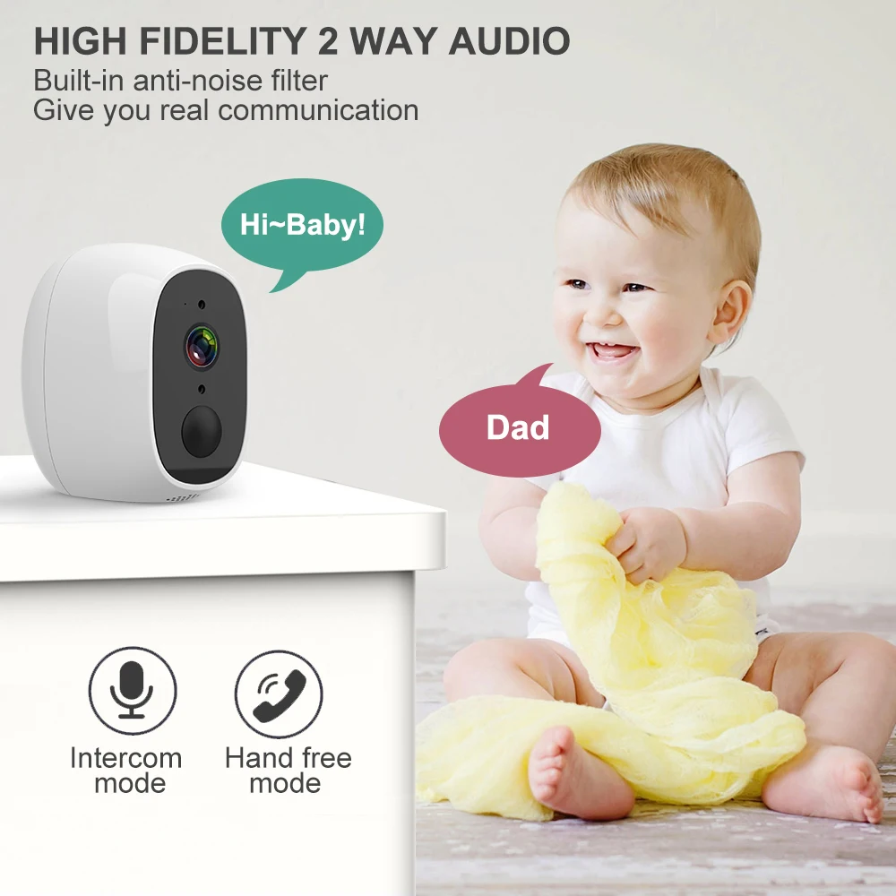 6. Высококачественный двусторонний домофон без шума: вы можете говорить с камерой или слушать о голосе от камеры, более умный, чтобы узнать ситуацию в комнате.
