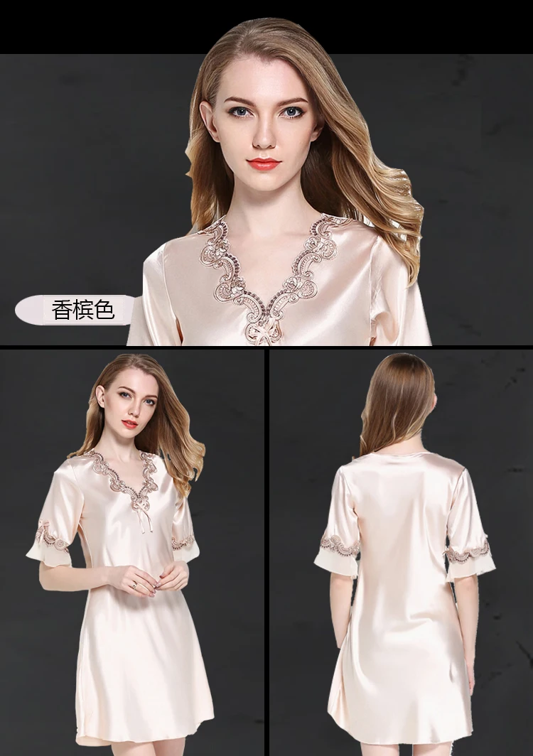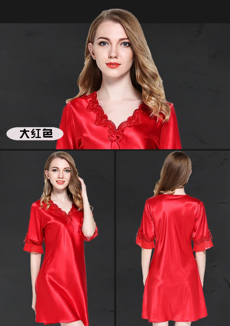 Кружевное Ночное платье, сексуальное шелковое атласное ночное белье с коротким рукавом, ночная рубашка с v-образным вырезом, кружевное ночное белье, женская летняя домашняя мягкая одежда
