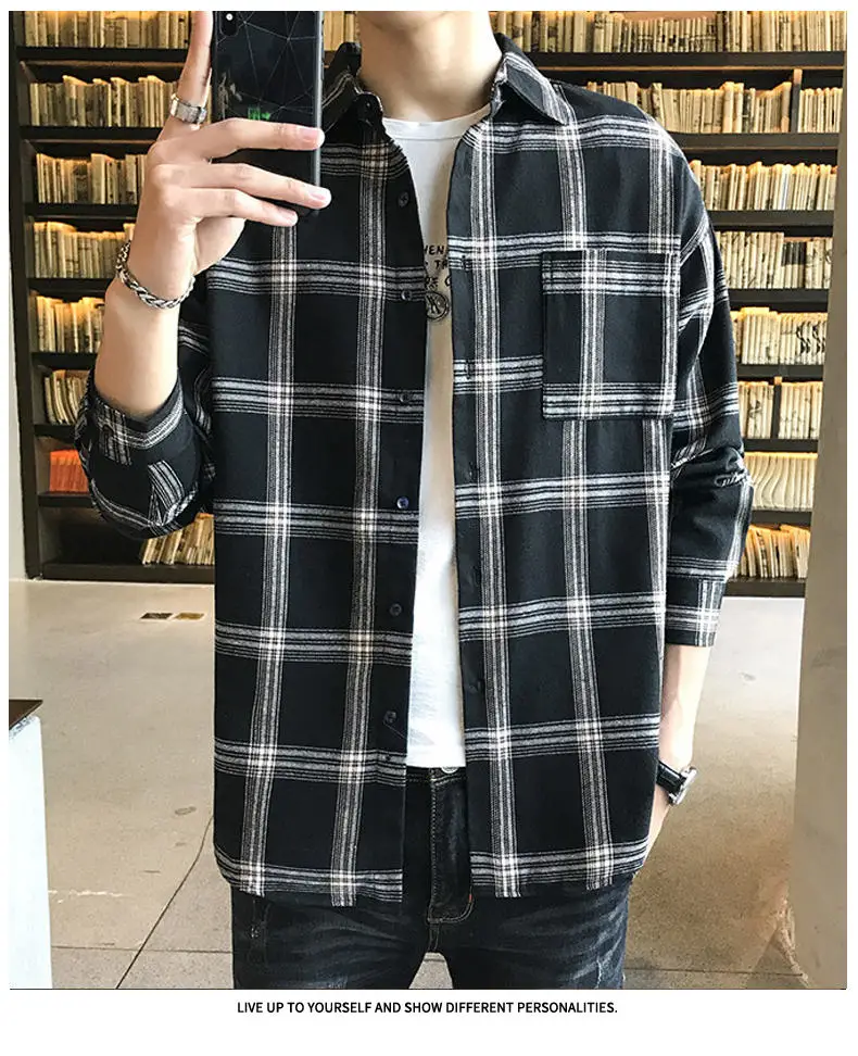 UYEEMU рубашки мужские весенние серые клетчатые рубашки Молодежные хлопковые рубашки мужские осенние повседневные Мягкие свободные рубашки японского корейского стиля размера плюс M-5XL
