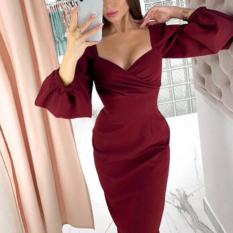 Элегантные женские платья, модные вечерние женские платья для клуба, женские платья, красные, черные обтягивающие соблазнительные платья, однотонные платья с длинным рукавом