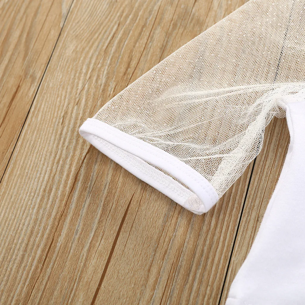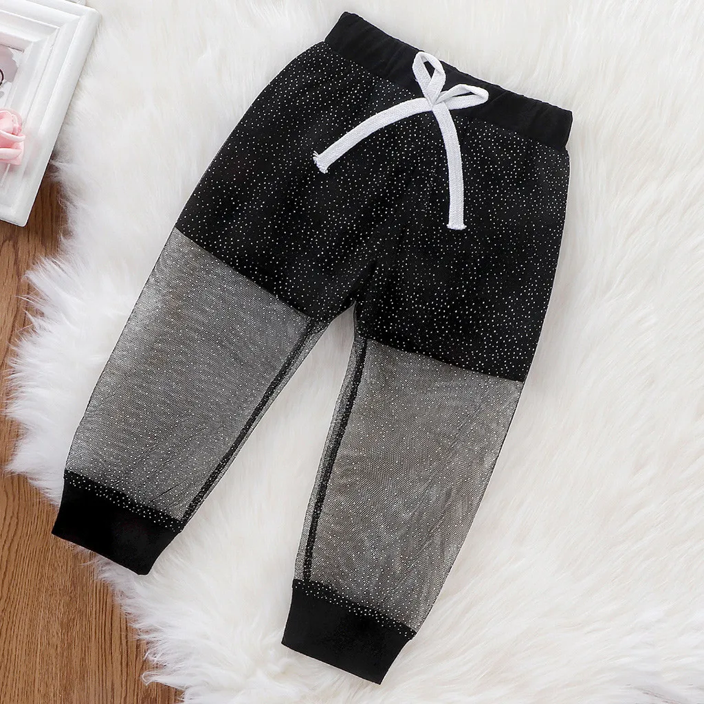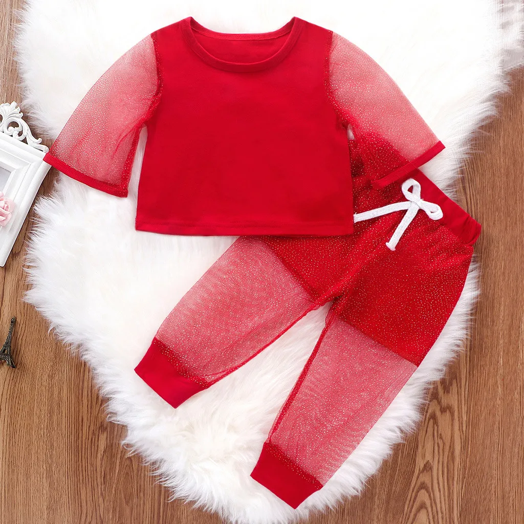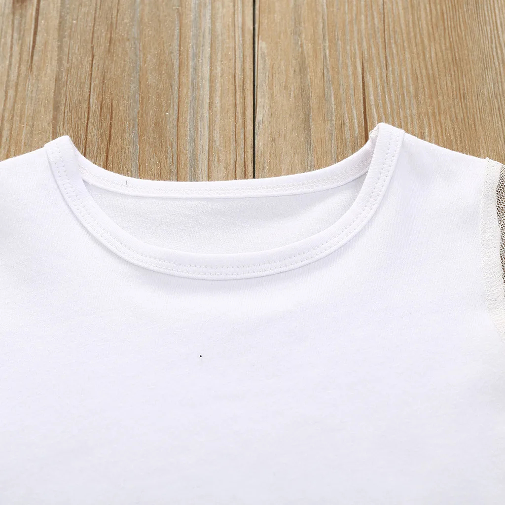 Комплект одежды из 2 предметов для маленьких девочек: однотонный топ с длинными рукавами и фатиновой юбкой + штаны в горошек