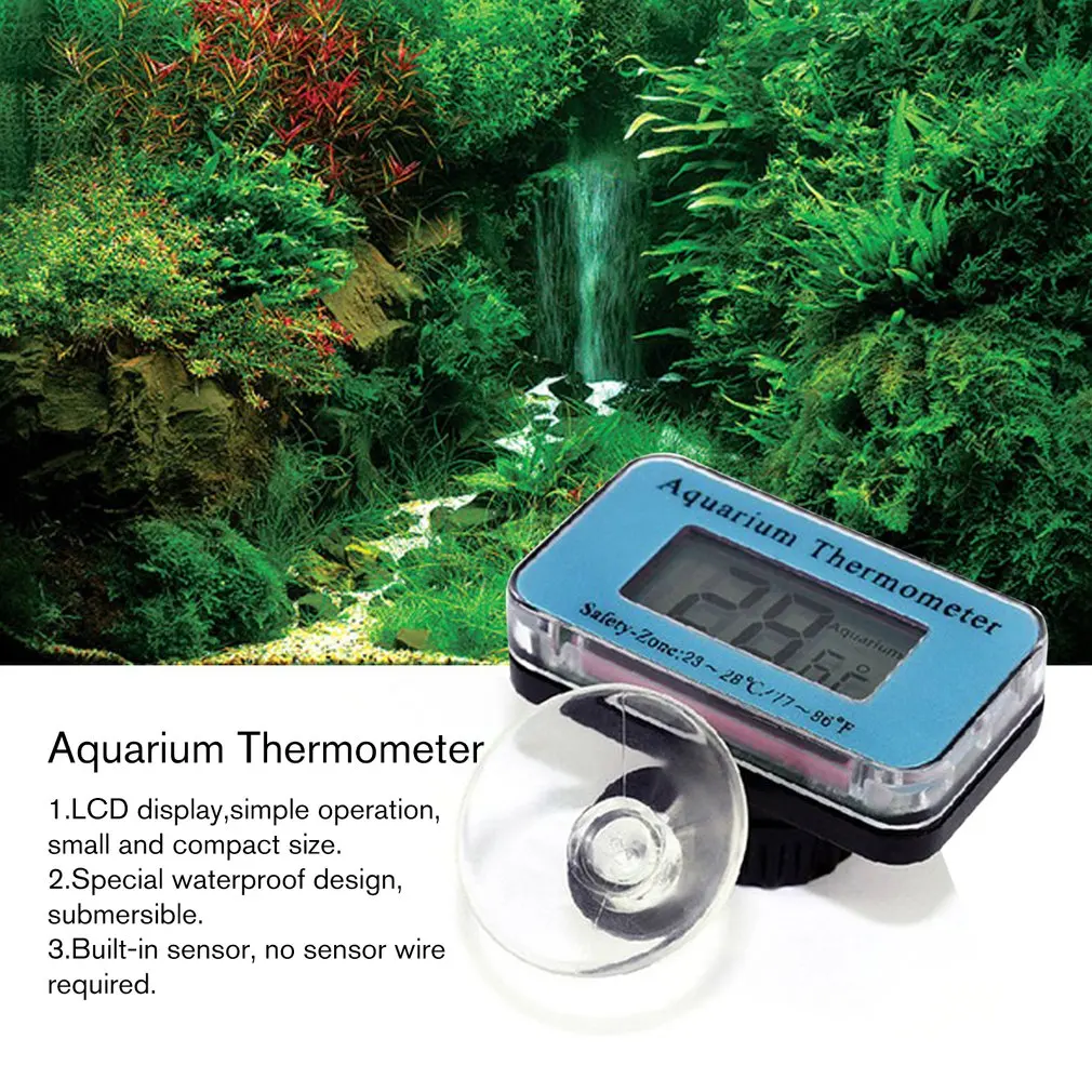 Waterproof Simple Small Submersible Aquarium LCD Digital Thermometer Fish Tank Water Sucker-type Aquarium Thermometer