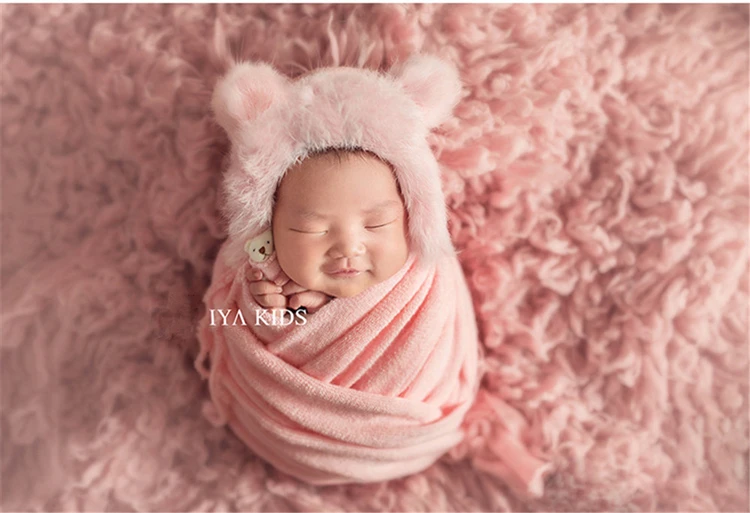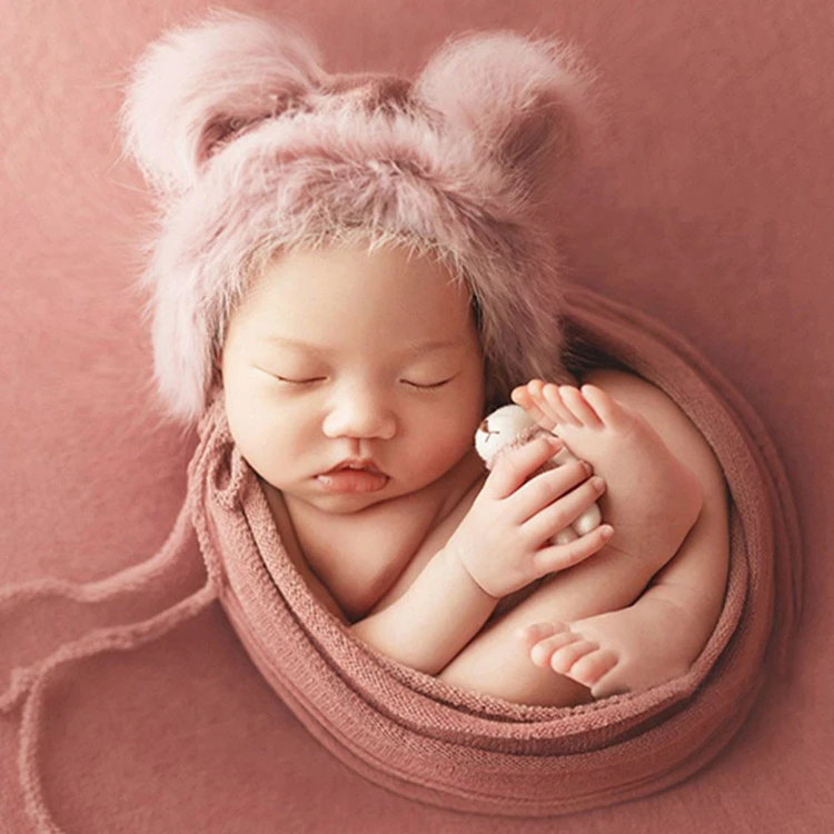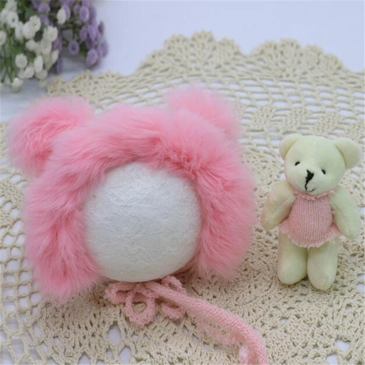 Crochet Fluffy Baby Hat Cute Bear Doll Set Baby Photography Props Studio Shoot Newborn Photography Accessories Baby Photo Props