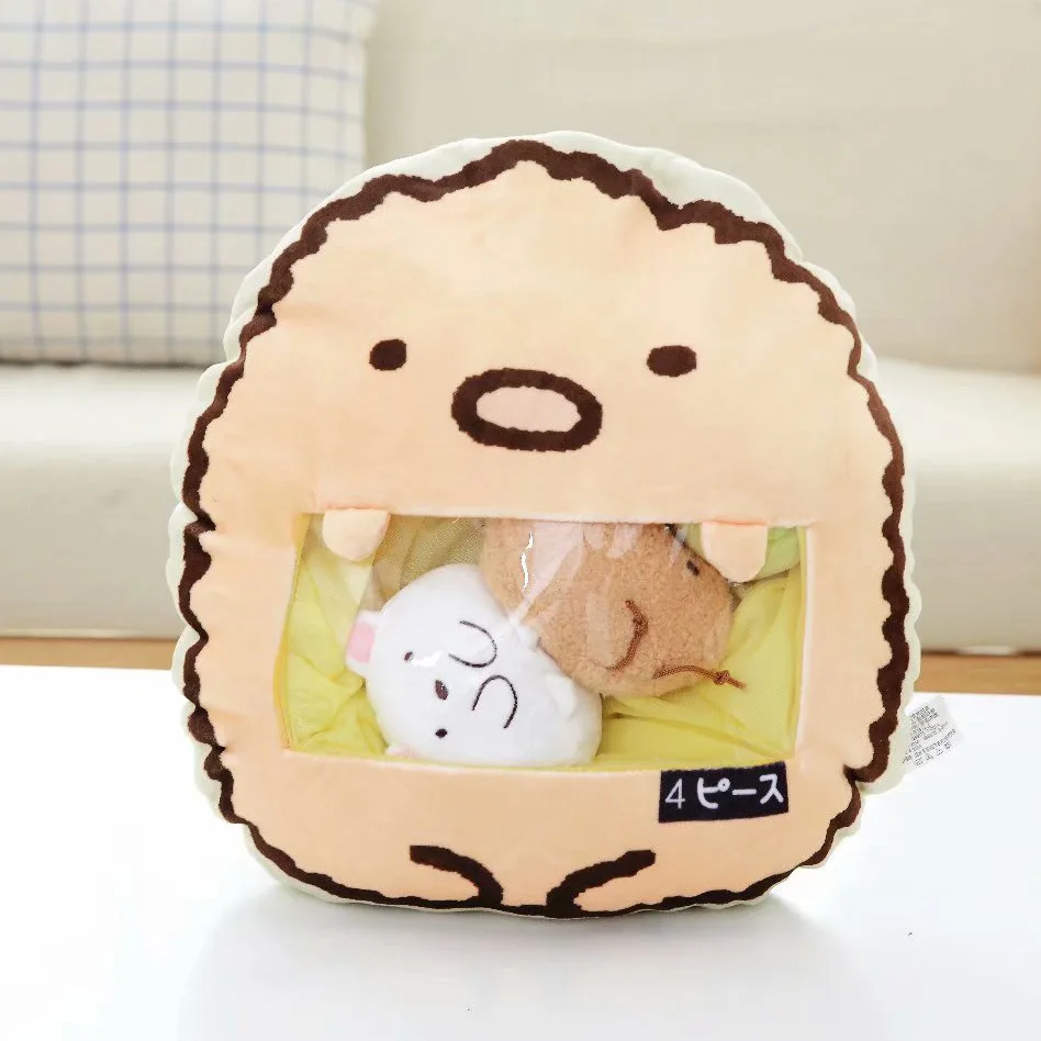 Хлеб подушка размер 38*30 см, 4 маленькие игрушки в одной сумке