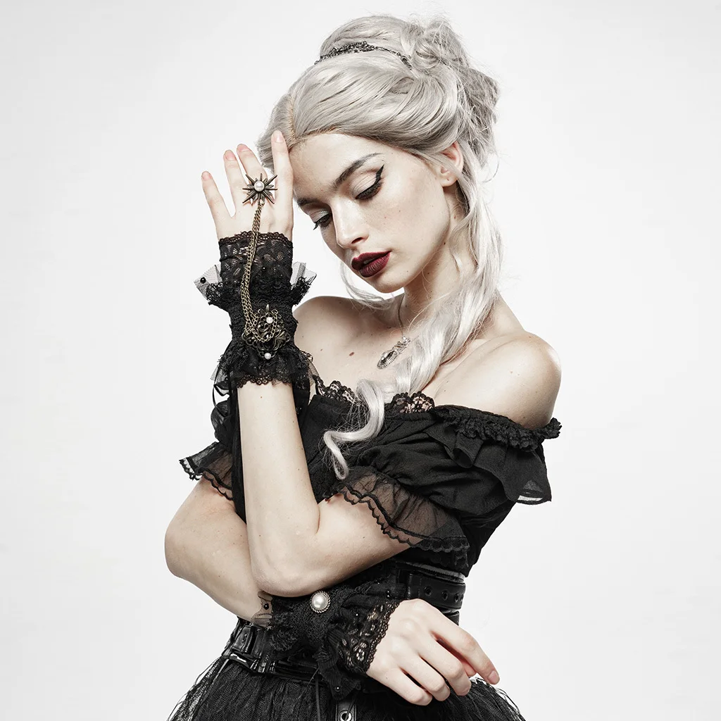 Винтаж великолепные и брелоком в форме звезды официальная Вечеринка вечернее Клубное перчатки благородные Queen кружева Для женщин сексуальные перчатки панк Рейв WS-327SSF