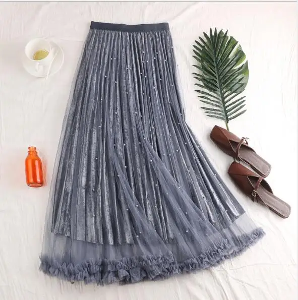 Женская бархатная юбка макси длинные юбки женские плиссированные