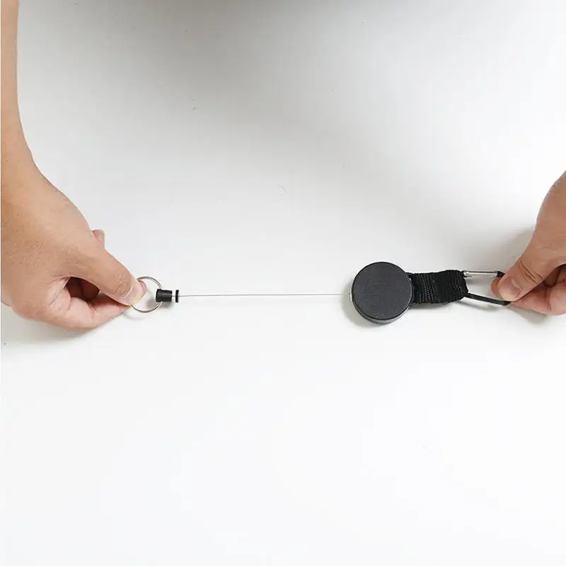 Черная Выдвижная цепочка для ключей, открытый карабин, удобная Пряжка, разрешение на работу, держатель значка, Противоугонный шнур, телескопический подвесной зажим