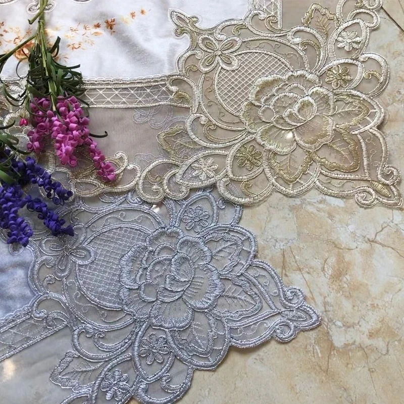 Роскошная Европейская бархатная кружевная ткань 4 цветов, прошитая вышивка украшение скатерти, пылезащитный чехол для свадебной мебели, тканевый коврик для кофейного столика, рождественское свадебное украшение