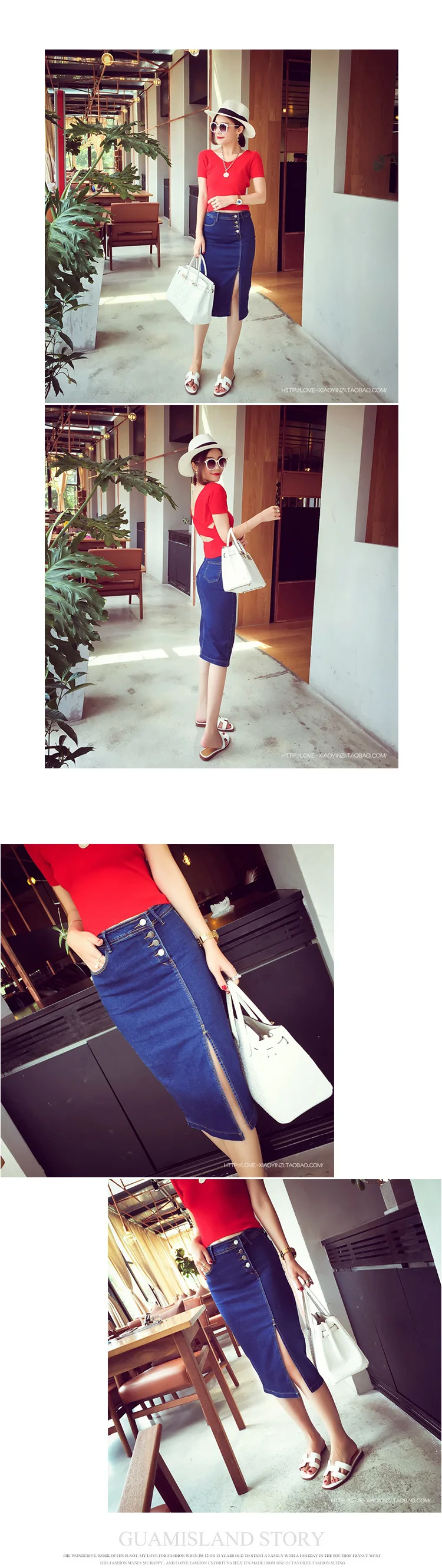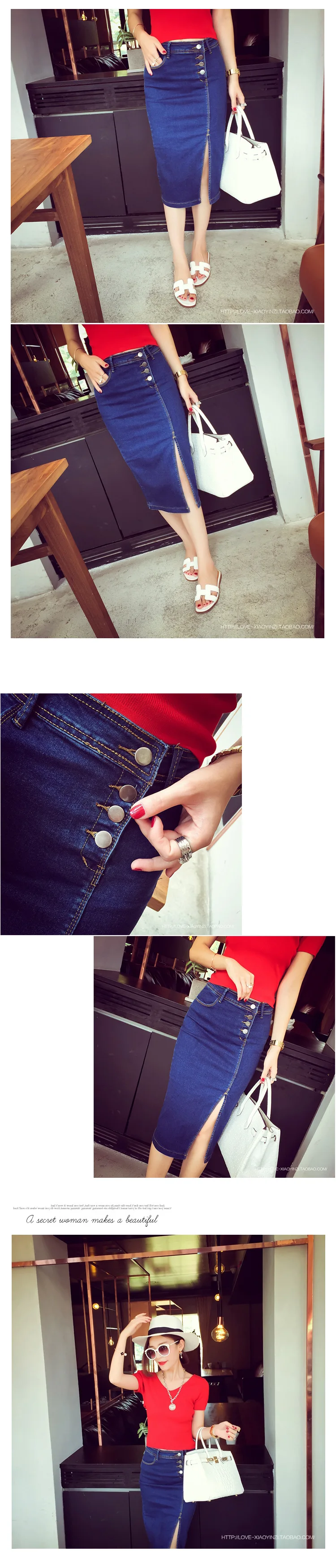 Женская джинсовая стрейчевая юбка-карандаш средней длины с высокой талией, корейская мода 2020, облегающие джинсы с разрезом по бокам, 2019