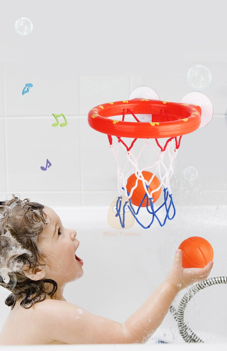 1. Наш игровой набор включает в себя мини-баскетбольный обруч и 3 легких мяча для стрельбы, так что ваши дети могут развлекаться во время ванны. 2. Пусть ваши дети развлекаются, этот баскетбольный набор игрушек может быть просто тем, что вам нужно, чтобы отвлекать их внимание, повышая их спортивную, точную и мелкую моторику! 3. Это не просто игрушка, которая может сделать ребенка наслаждаться ванной во время баскетбольной игры.