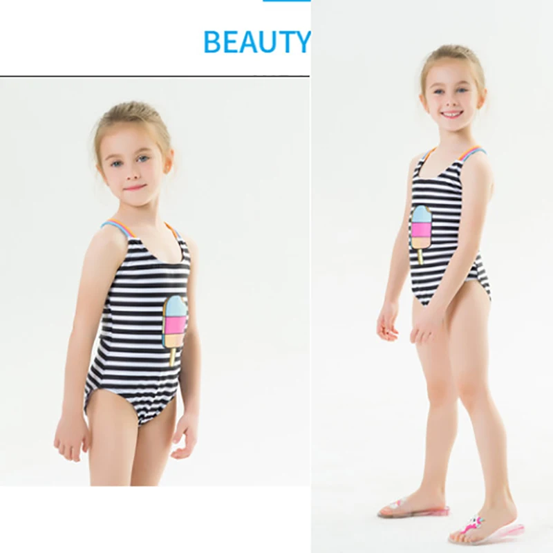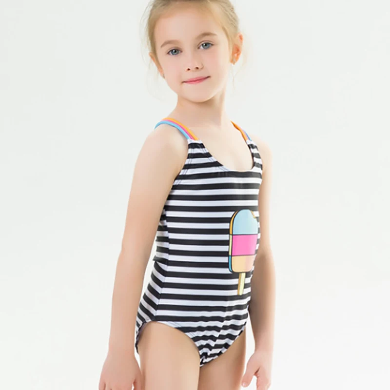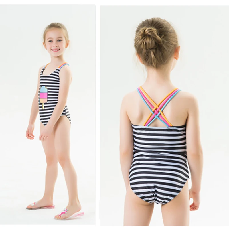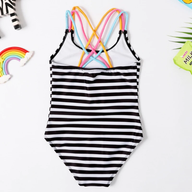 Пляжная одежда, купальный костюм для девочек, цельный купальный костюм в полоску, черный, милый купальный костюм для девочек, детский купальный костюм