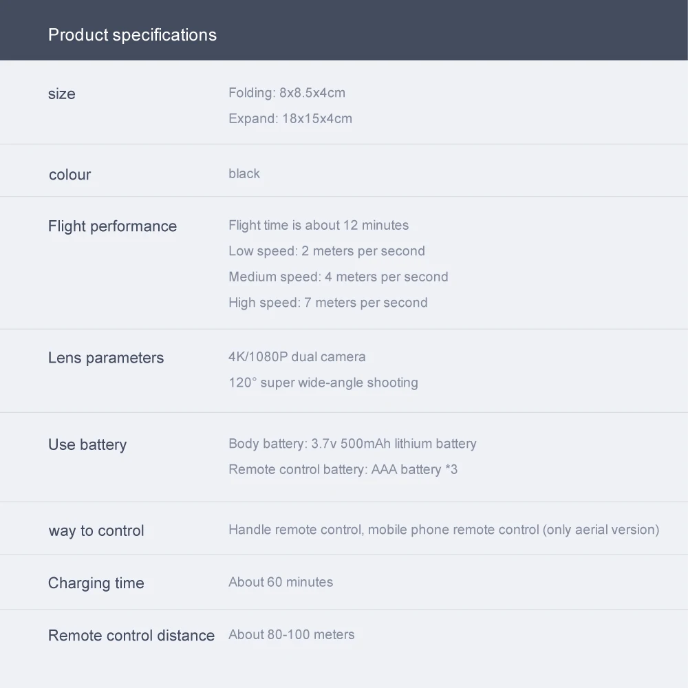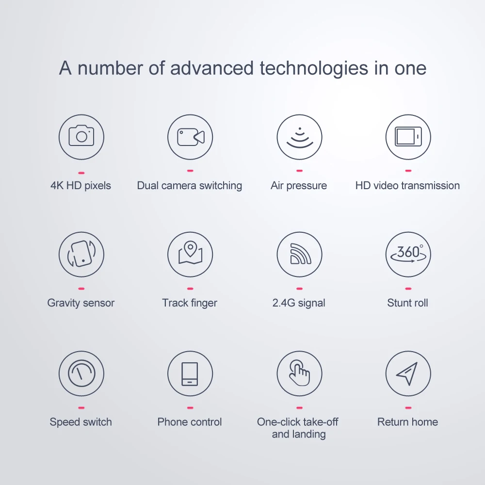 1: руки складные, небольшие по размеру и легко носить с собой. 2: с функцией удержания высоты, стабильность полета. 3: в безголовом режиме нет необходимости регулировать положение самолета перед полетом. 4: Используйте функцию возврата одной кнопкой, чтобы легко найти путь домой. 5: встроенная камера высокой четкости 500 Вт/4K пикселей, на удивление, она может снимать Потрясающие фотографии и видео с неба. 6: с функцией Wi-Fi, он может быть подключен к приложениям и системе APK, и делать фотографии, видео и передачу в реальном времени через изображения камеры мобильного телефона. 7: нарисуйте траекторию полета на экране, и Дрон будет лететь автономно по указанному пути. 8: технология защиты от помех 2,4 ГГц. 9: 4 канала, способные на подъем, спуск, вперед, назад, левый полет, правый полет и 360 ° прокатки. 10: шестиосевой гироскоп, полет более стабильный и управление более удобным. 11: светодиодные фонари делают полет более эффектным, особенно в темноте. Функции: вверх/вниз, вперед/назад, влево/вправо поворот, боковой полет, светодиодные фонари, Безголовый режим, один ключ автоматического возврата, режим удержания высоты, wiFi FPV (двойной объектив с функцией переключения двух линз)