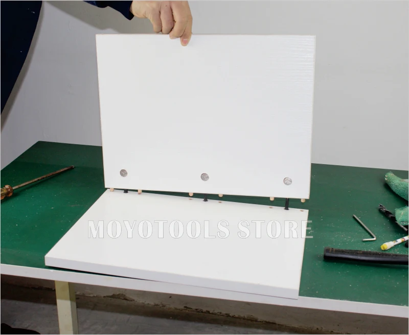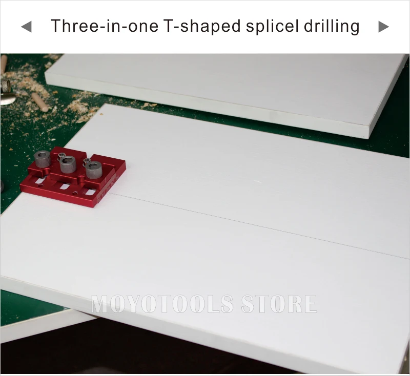 Т-образное соединение и сверление1. Сверлите доску в соответствии с L-type сплайсинга операции2. Выровняйте две доски и нарисуйте линию там, где нужны отверстия3. Отрегулируйте положение и зафиксируйте доску