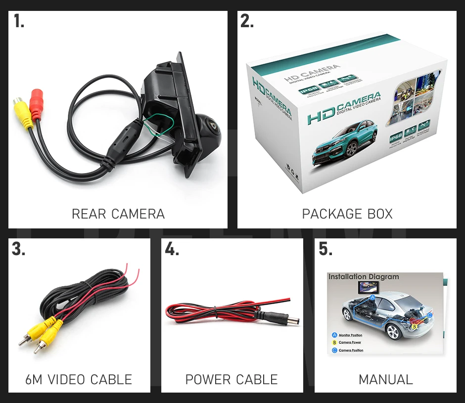 • Не нужны интерфейсы CANBUS или OBD, встроенный модуль треков заднего хода камеры, просто подключите питание.