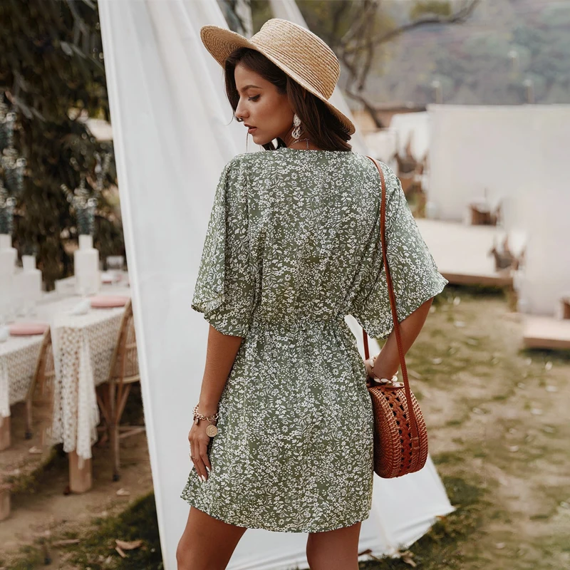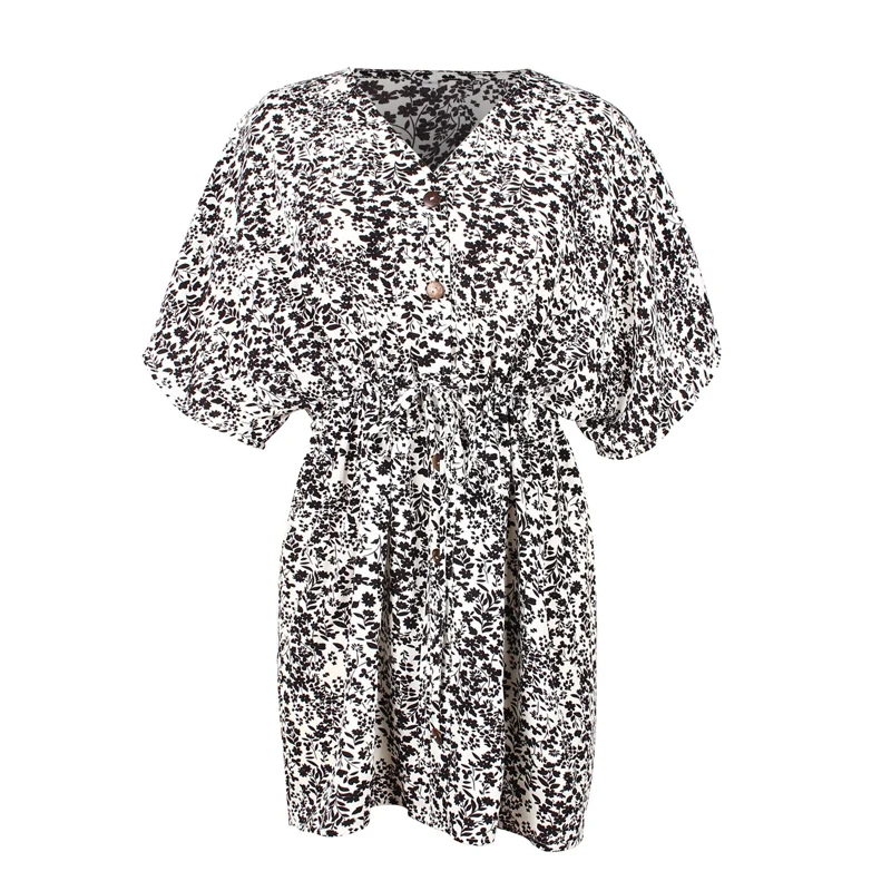 2021 женское Повседневное платье с цветочным принтом, платье-рубашка с высокой талией, свободное платье с v-образным вырезом и пуговицами, мини-платье трапециевидной формы с рукавами Hlaf, Vestido