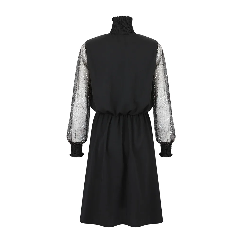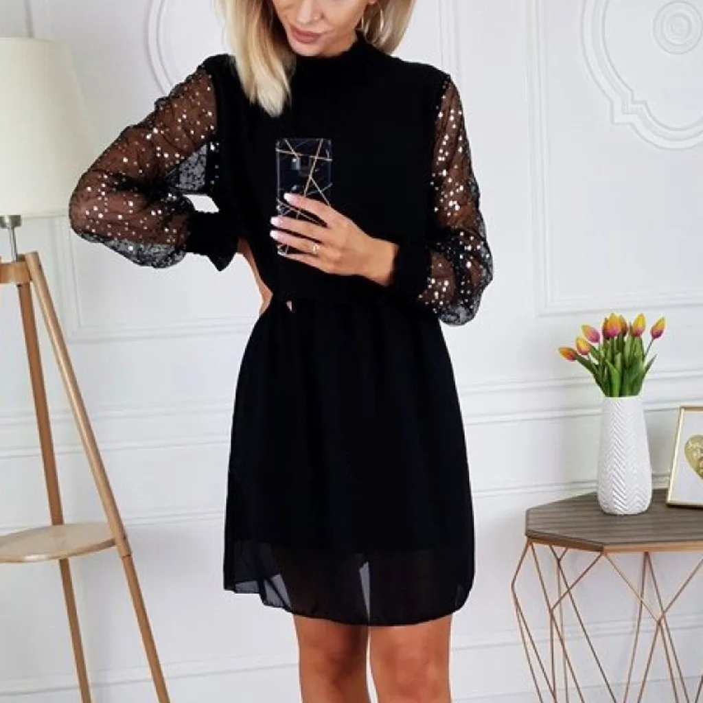 Особенности: повседневное, с круглым вырезом, однотонное, с длинными рукавами, с блестками, перспектива, мини-платье, перспективная сетка, повседневная одежда, летнее платье, летнее Повседневное платье ..