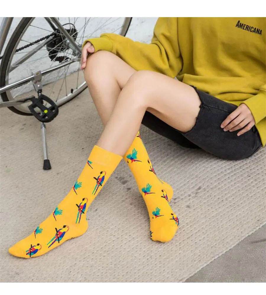 1. Размер: европейский размер 38-43, эластичный, хорошо подходит для вашей стопы. 2. Материалы: 75% хлопок, 18% полиэстер, 5% спандекс, 2% эластан. 3. Стиль носков: круглый вырез, выше лодыжки. 4. Сезон: весна, лето, осень. 5. Цвет: синий, желтый. 6. Уход: Машинная или ручная стирка, не гладить.