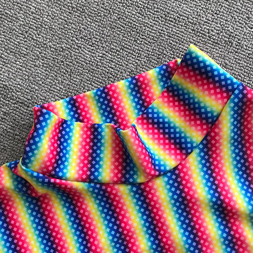 Женский купальник из 3 предметов в радужную полоску с радужным градиентом и длинным рукавом