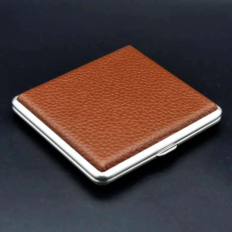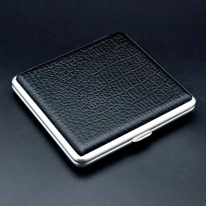 20 cigarettes KUBOY brass border Genuine Leather black cigarette case Metal double-sided cigarette holder 8.0*84mm cigarette